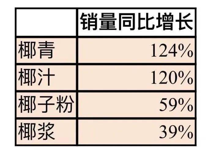 為何椰制品近年來廣受市場歡迎?業(yè)內(nèi)人士普遍分析認(rèn)為這與椰制品“新奇”與“健康”等元素相關(guān)。目前,主打“輕健康”理念的植物蛋白類飲料大受市場歡迎,根據(jù)《2020植物蛋白飲料創(chuàng)新趨勢(shì)》,椰子風(fēng)味在植物蛋白飲料中增長也處于最快梯隊(duì),增速高達(dá)109%。